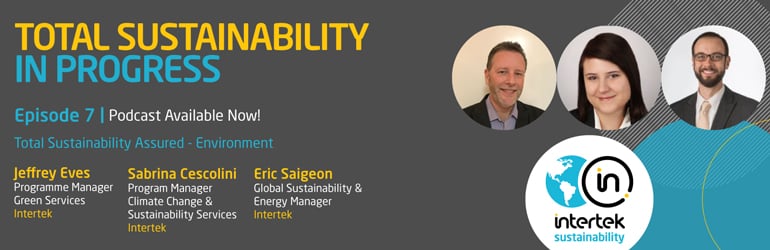 Intertek Resources Blog 2019 Total Sustainability in Progress: Episode 7 Resources Total Sustainability in Progress: Episode 7 Tags: Environmental Podcast Sustainability 30 Oct 2019 Total Sustainability Assured – Environment Episode #7 Blogs by Category Aerospace Asset Integrity Management Assurance Automotive Batteries & Energy Storage Building & Construction Certification Chemicals Cosmetics CSRD Cybersecurity Electric Vehicle Electrical Safety Electronics and Appliances Energy Environmental Food & Agriculture Hazardous Locations HVAC Industrial IoT Life Safety & Security Lighting Medical and Pharmaceutical Medical Devices Oil and Gas Packaging Podcast Product Design Proposition 65 Quality and Performance Regulatory Update Risk Management Safety & PPE Safety Training Supply Chain Sustainability Transportation Wireless You may be interested in...
