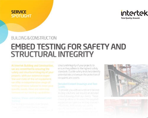 As your dedicated partner in building excellence, Intertek Building and Construction is your steadfast ally for reliable, accurate, and superior testing services. Our accomplished team, coupled with state-of-the-art technology, guarantees your structures' safety and longevity. Contact us today to discuss your testing requirements and elevate your projects to the pinnacle of safety and performance standards.